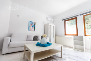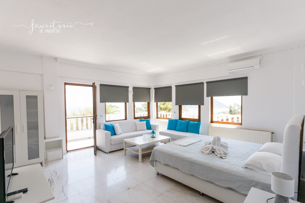Η σουίτα έχει ενιαίο χώρο (υπνοδωμάτιο-σαλόνι-κουζίνα) και συνιστάται για δύο ζευγάρια ή μια οικογένεια με δύο παιδιά.